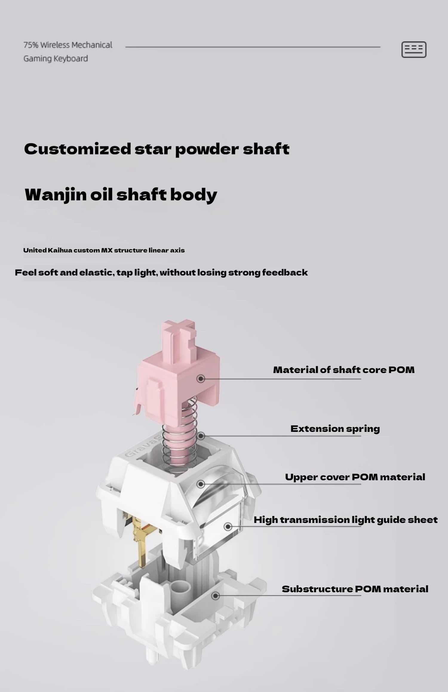 - Mechanische Kailh/Kaihua-Schalter bieten ein konsistentes, taktiles Feedback für schnelle und treffsichere Eingaben.