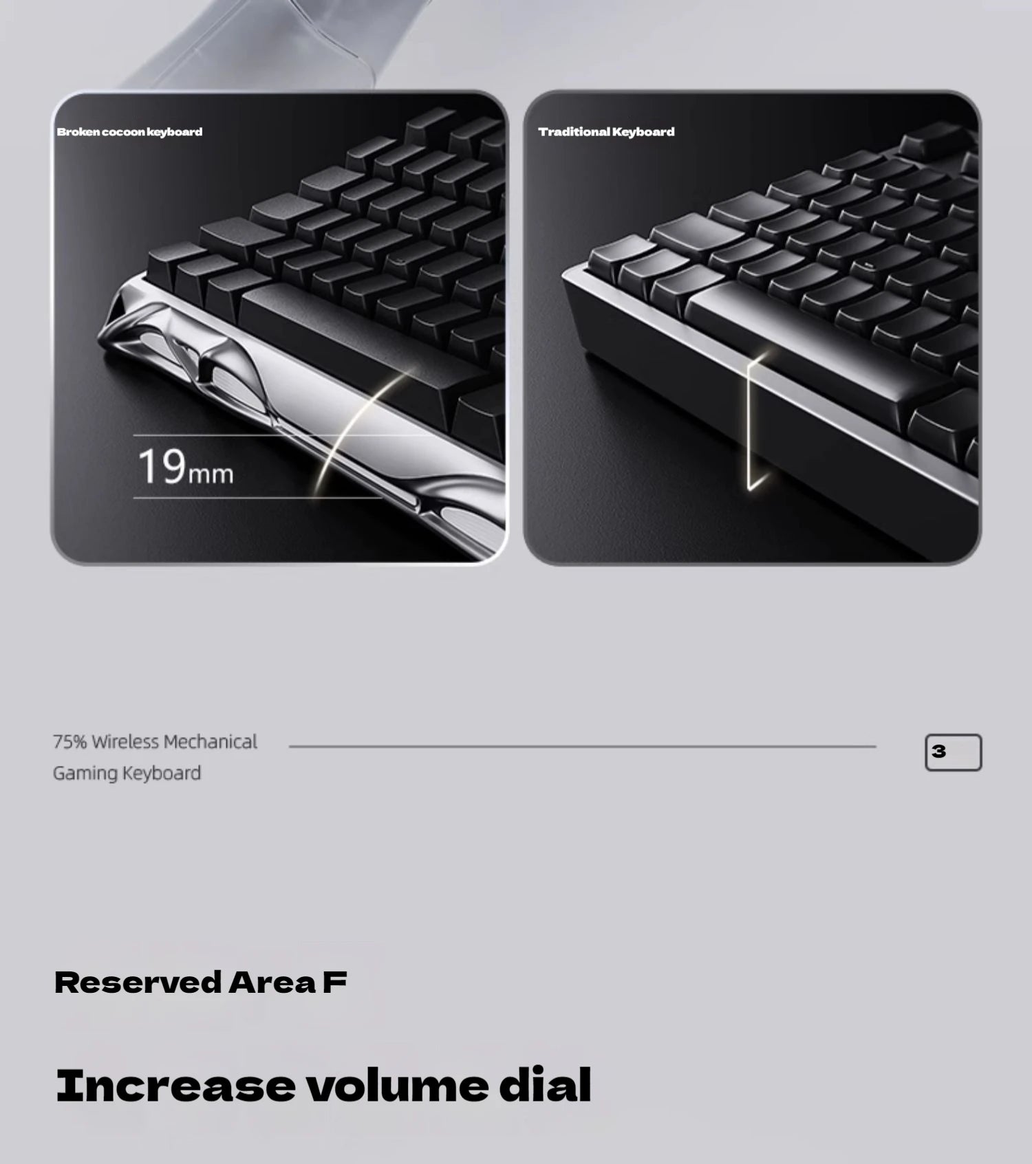 - Kompakte 75%-Anordnung spart Platz und bietet dennoch viele Funktionen, die bei größeren Tastaturen vorhanden sind.