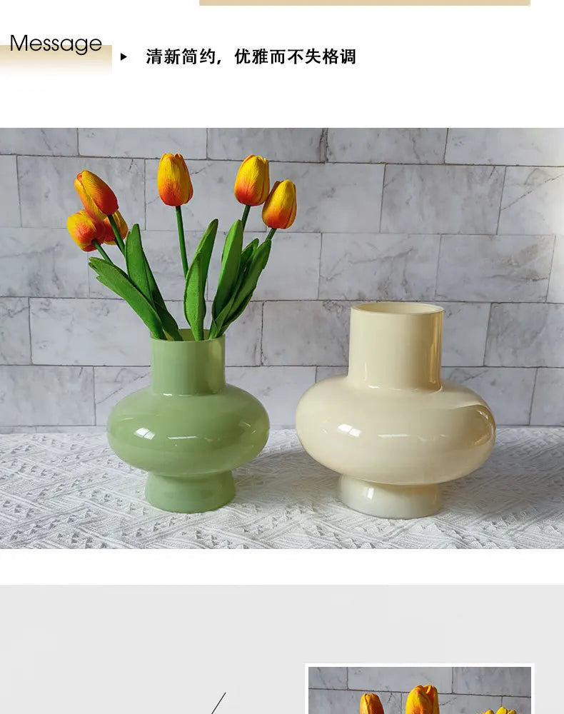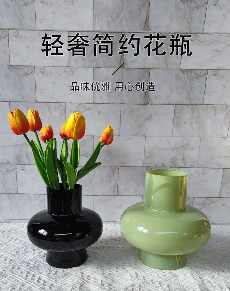 Green Pot Bellied Glass Vase Floral Arrangement Accessories Hydroponics Terrarium Flower Vase Home Decoration Accessories