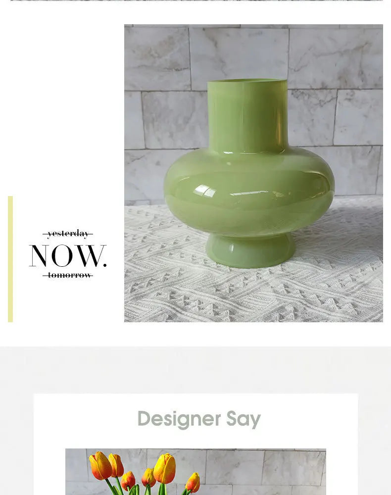 Green Pot Bellied Glass Vase – Elegante Tischdekoration für stilvolle Wohnräume