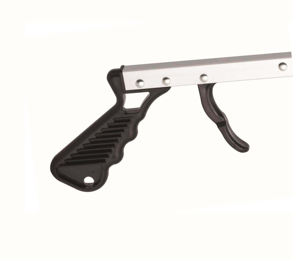 Die Zange ist einfach zu bedienen: Positioniere die Zange über dem gewünschten Objekt und drücke den Auslöser, um das Objekt sicher zu greifen. Lasse den Auslöser los, um das Objekt zu platzieren.