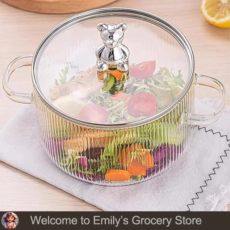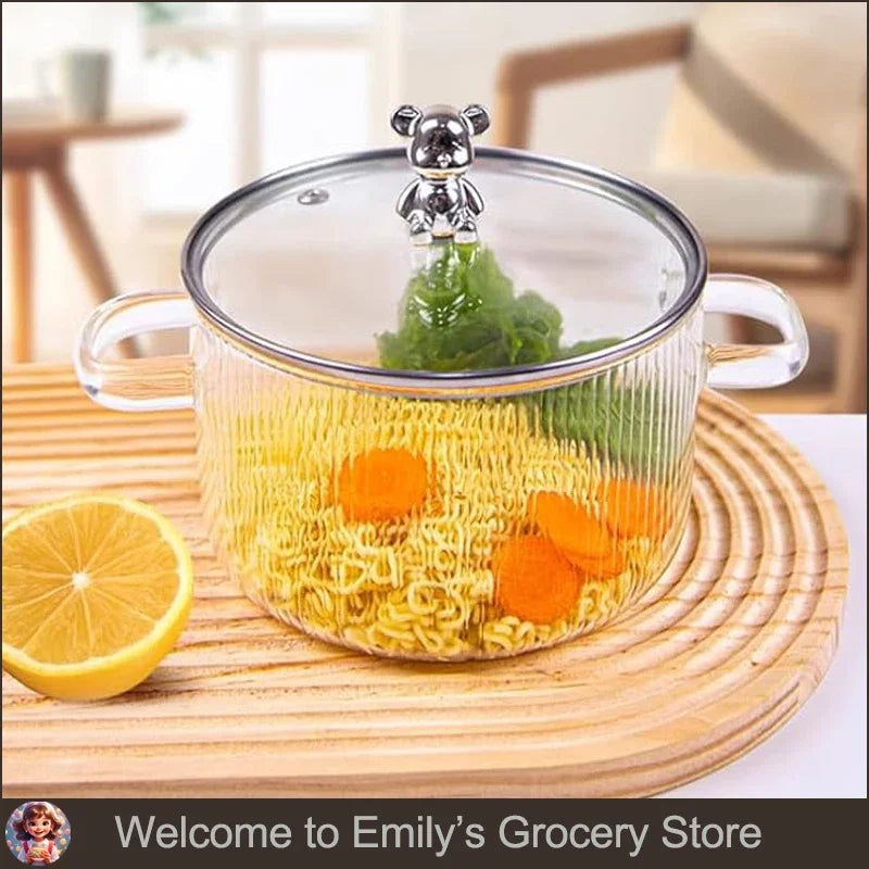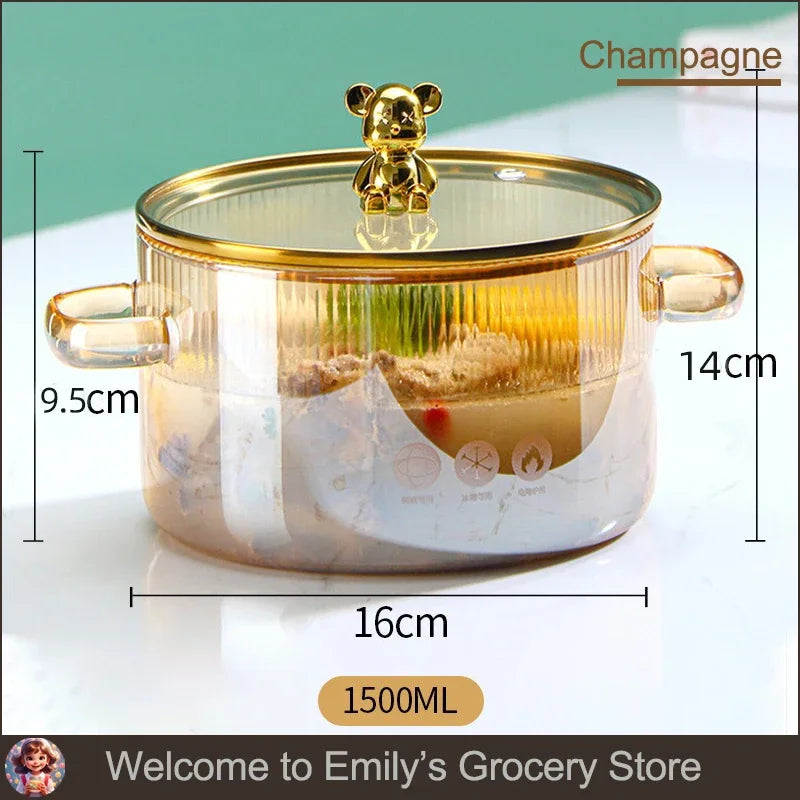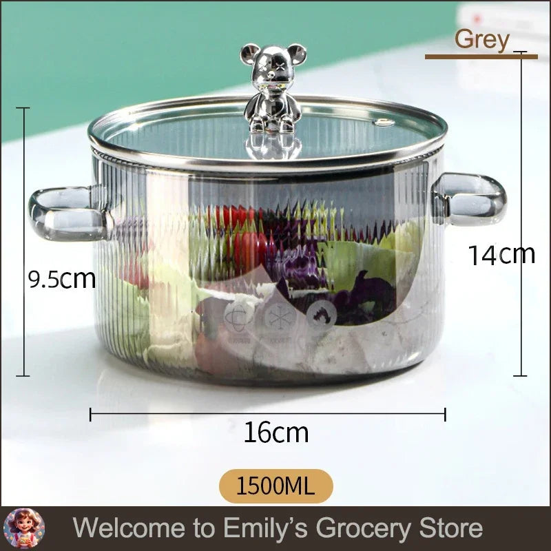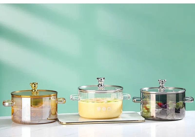 HighBorosilicateGlass Thickened PotHouseholdConvenient Bear Soup Pot with Lid Double Ear Soup Glass Pot Instant Noodles Milk Pot
