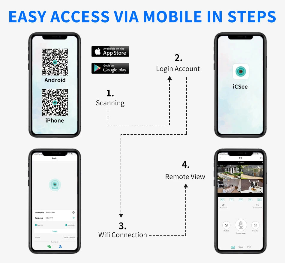 - Intuitive App-Steuerung für iOS und Android: Live-Ansicht, Aufzeichnungen und Einstellungen stets griffbereit.