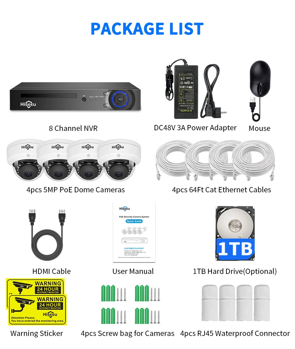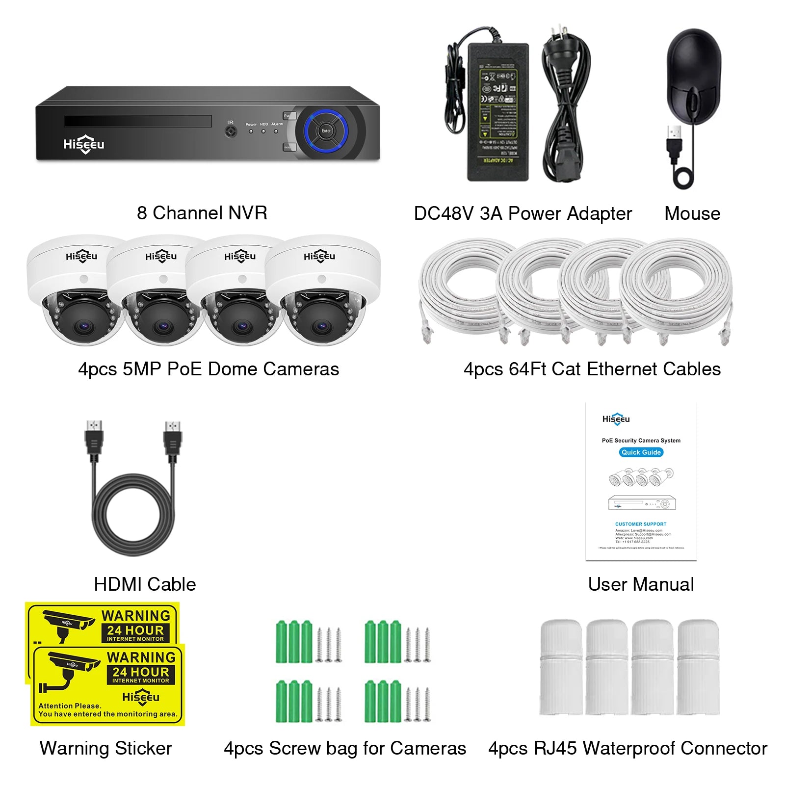 Hiseeu 4CH 5MP POE Dome IP-Kamera System – Zuverlässige 24/7 Überwachung für Zuhause und Außenbereich
