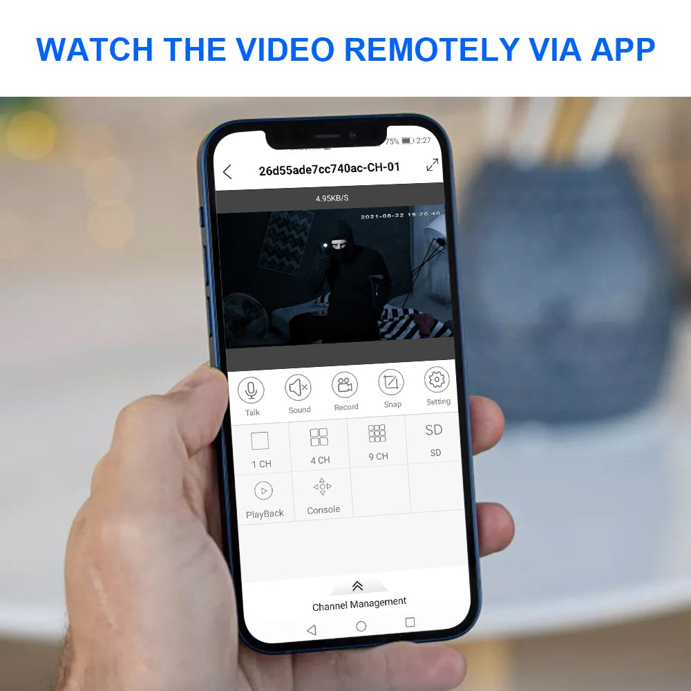 - 4-Kanal-System ermöglicht die gleichzeitige Überwachung mehrerer Bereiche, ideal für Eingänge, Auffahrten und Terrassen.