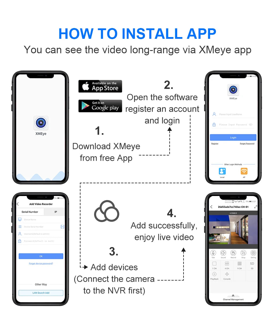 - Intuitive Benutzeroberfläche und Fernzugriff über App und Desktop-Software für Live-Ansicht, Wiedergabe und Verwaltung.