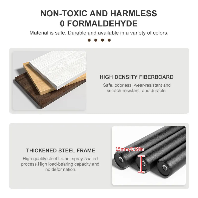 - Material: Metallrahmen; holzbasierte Paneele