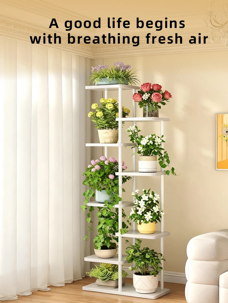- Nutzen Sie den Pflanzenständer, um sieben Ebenen systematisch mit verschiedene Pflanzentöpfe unterschiedlicher Größen aufzustellen – vertikaler Platz wird effizient genutzt und Ihre Pflanzensammlung bleibt sichtbar.