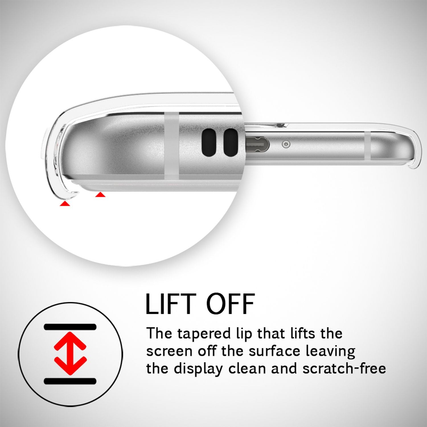 - Der leicht erhöhte Rahmen verhindert direkten Kontakt des Displays mit flachen Oberflächen und reduziert Kratzrisiken.