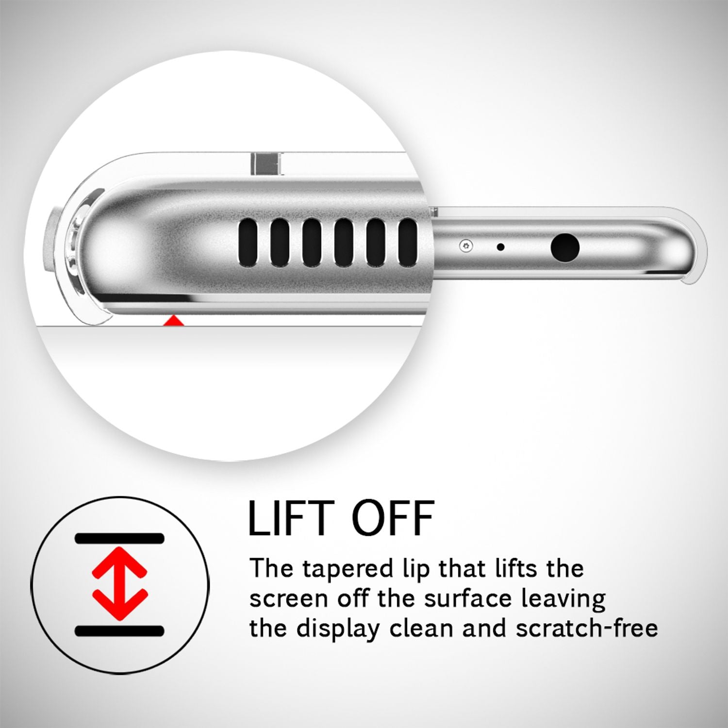 - Erhöhter Rahmen schützt das Display vor direktem Kontakt mit Oberflächen und reduziert das Risiko von Kratzern beim Ablegen.