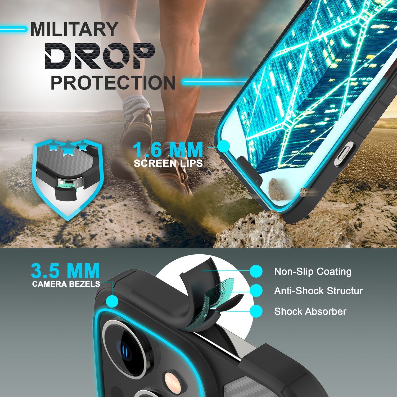 Hülle für iPhone 14 - Carbon Look Case Halb-Transparent Matt Anti-Fingerabdruck