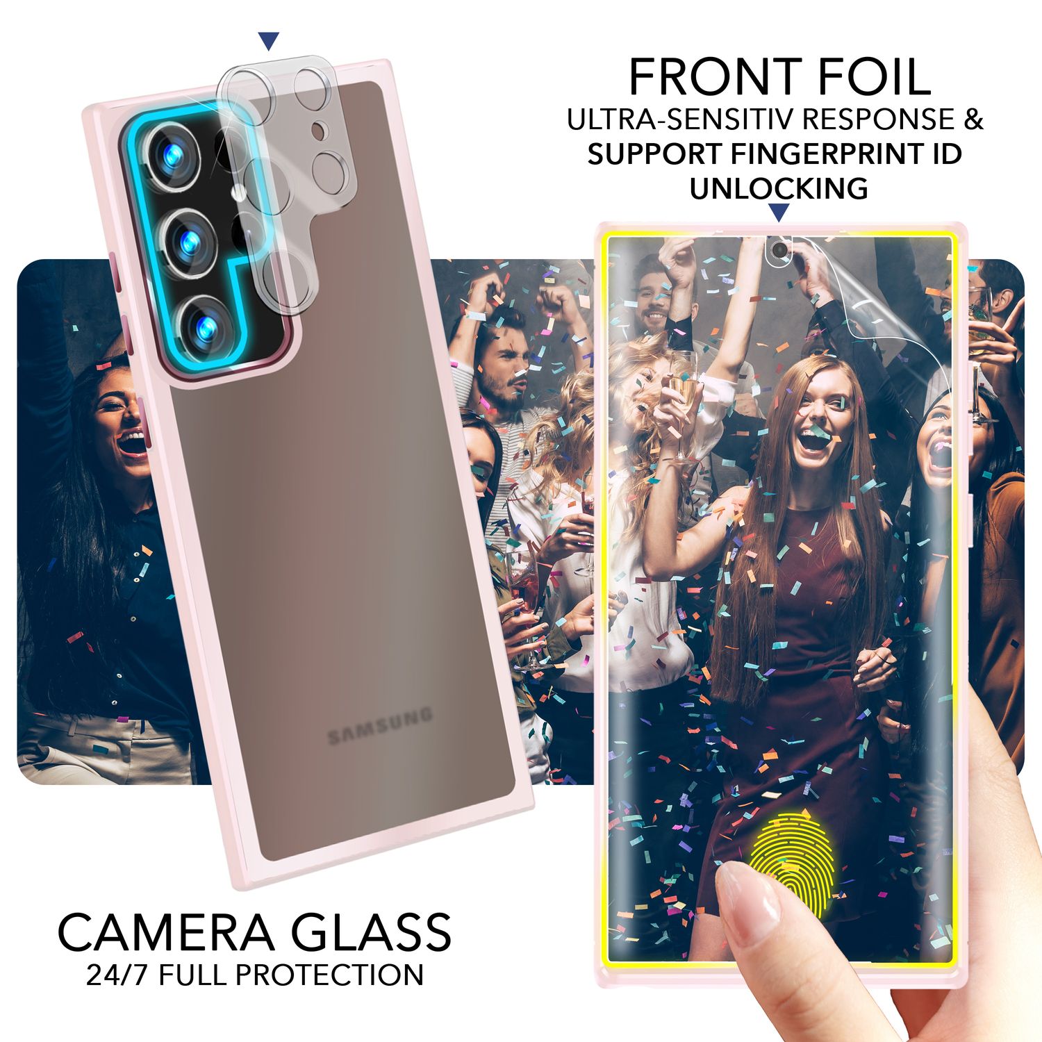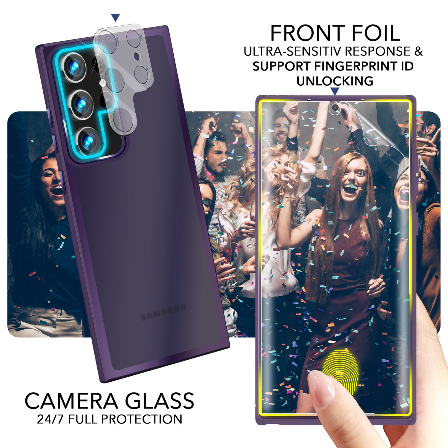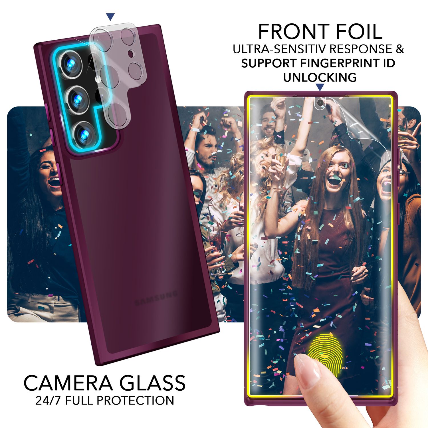 - Schutzmerkmale: Erhöhte Kanten zum Schutz von Display und Kameras, stoßdämpfende Ecken.