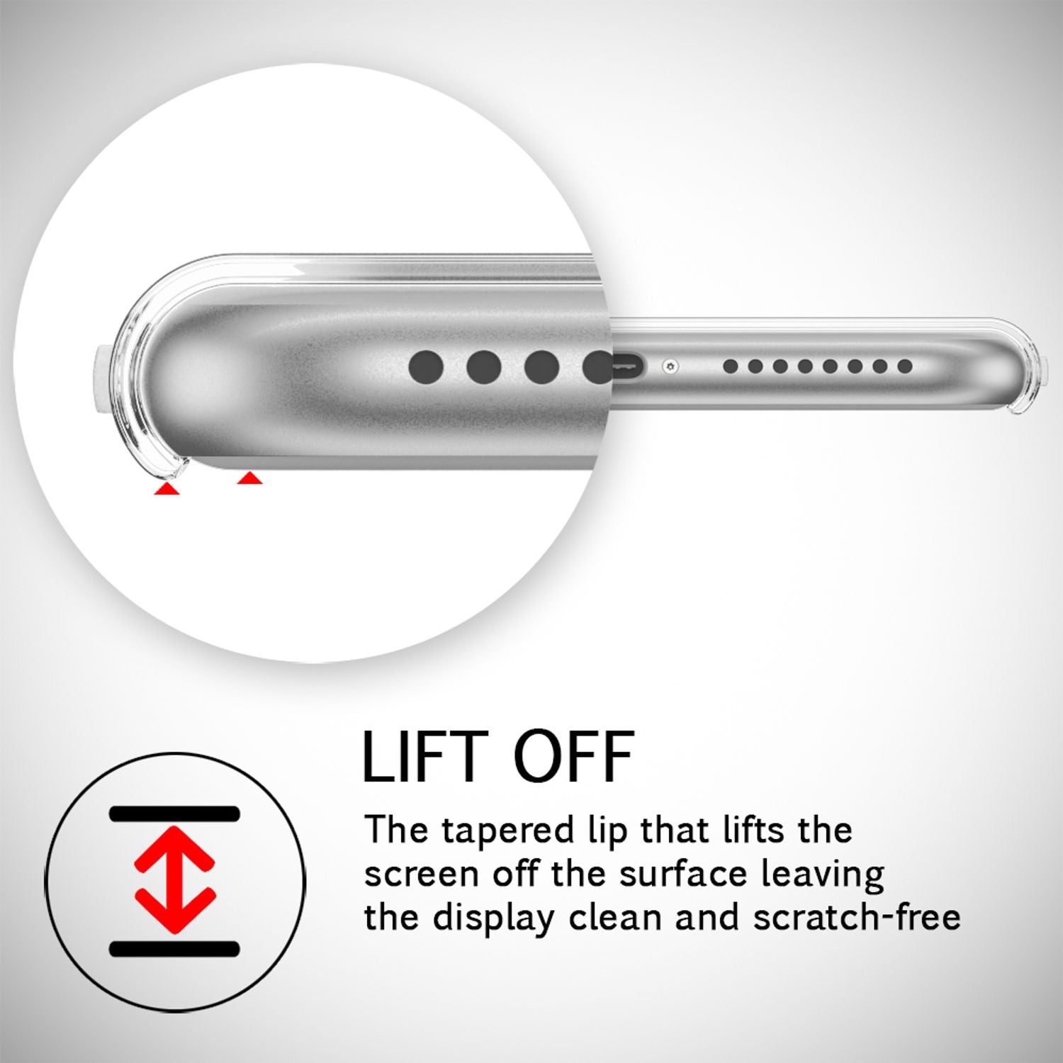 - Leicht erhöhte Kanten schützen das Display vor direktem Kontakt mit Oberflächen und reduzieren das Risiko von Kratzern.