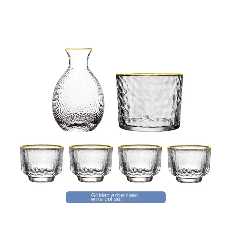Japanese Hammer Pattern Glass Wine Set Sake Pot Set Cocktail Cup Heat-resistant Scalding Wine Pot Wine Dispenser