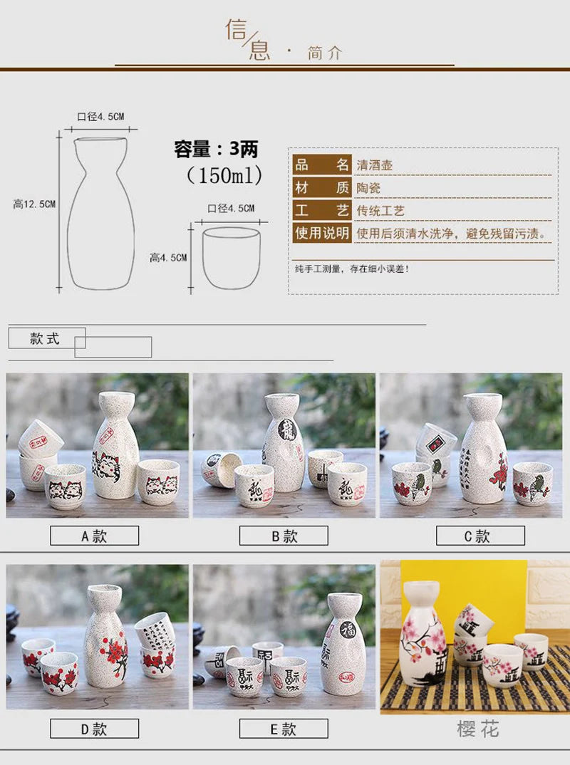 Japanese Style Sake Pot Household Retro Small Wine Cup White Wine Pot Hot Wine Pot Warm Wine Pot Wine Glass Ceramic Sake Set