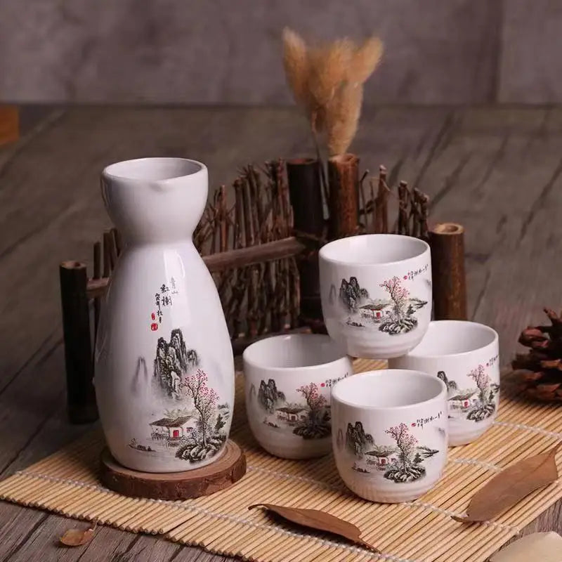 - Typ: Set (Sake-Kanne und mehrere kleine Tassen)