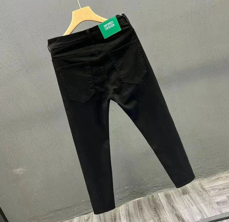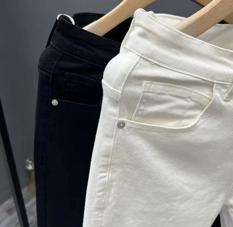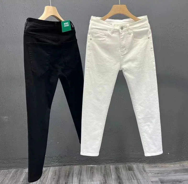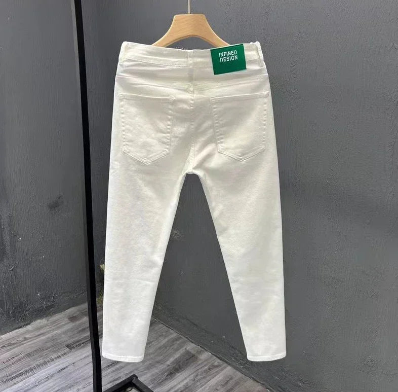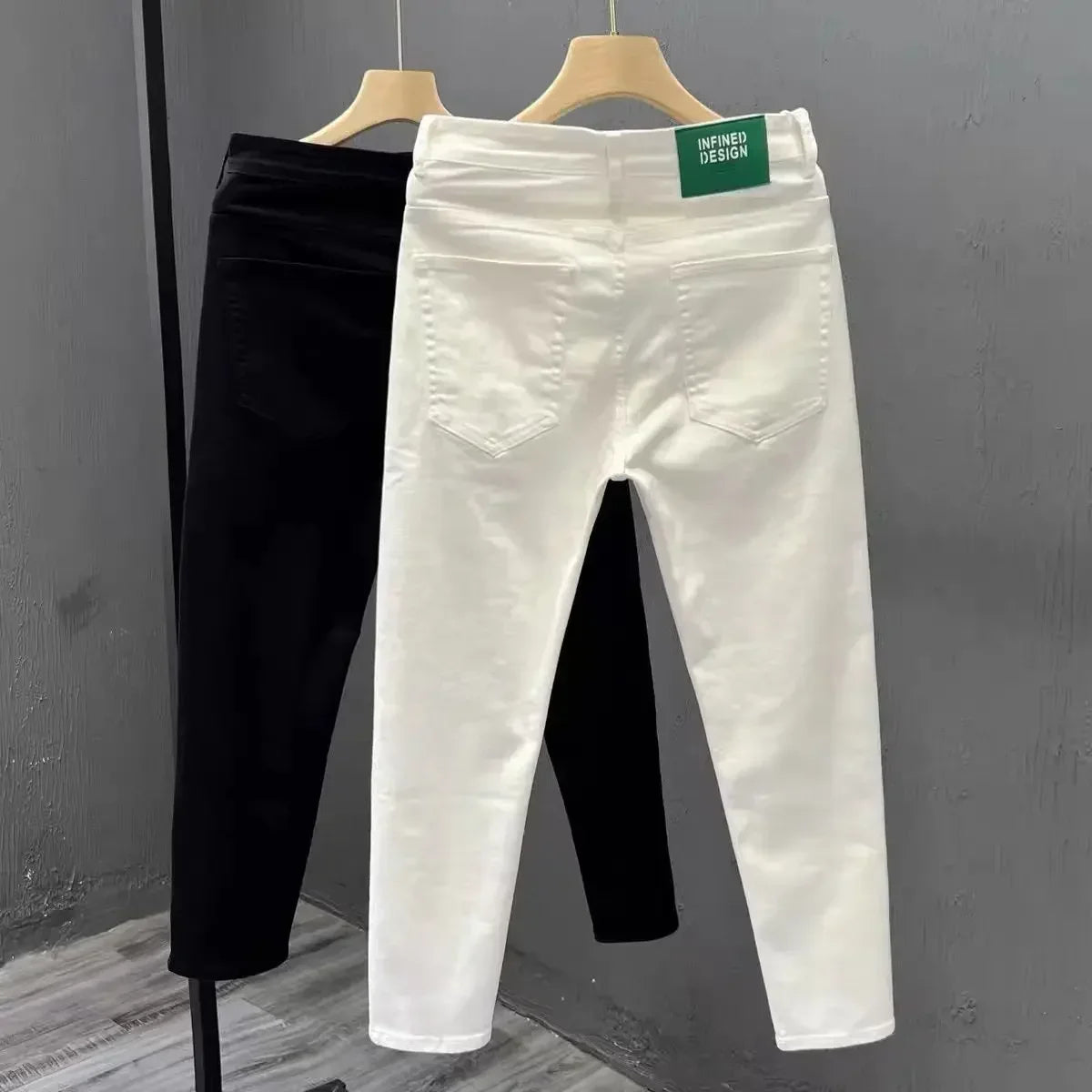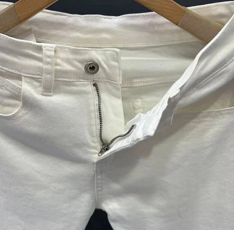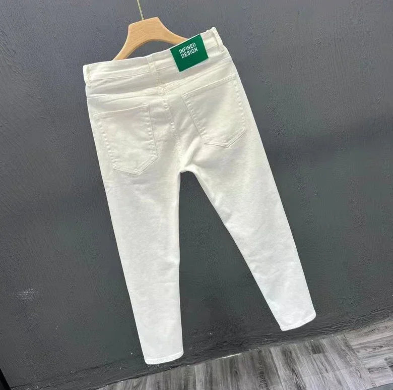 Jeans for Men White High Quality Trousers Slim Fit Tight Pipe Male Cowboy Pants Solid Skinny Stacked – Eleganter Slim-Fit-Komfort für jeden Tag