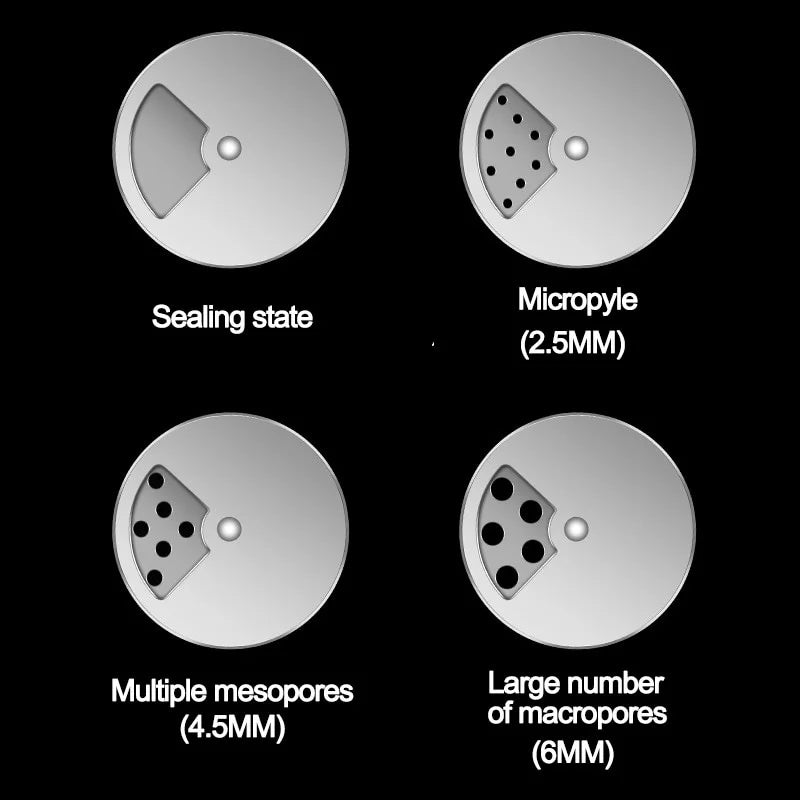 - Drehbarer Deckel mit mehreren Öffnungsoptionen ermöglicht stufenloses Dosieren je nach gewünschter Körnung oder Menge.