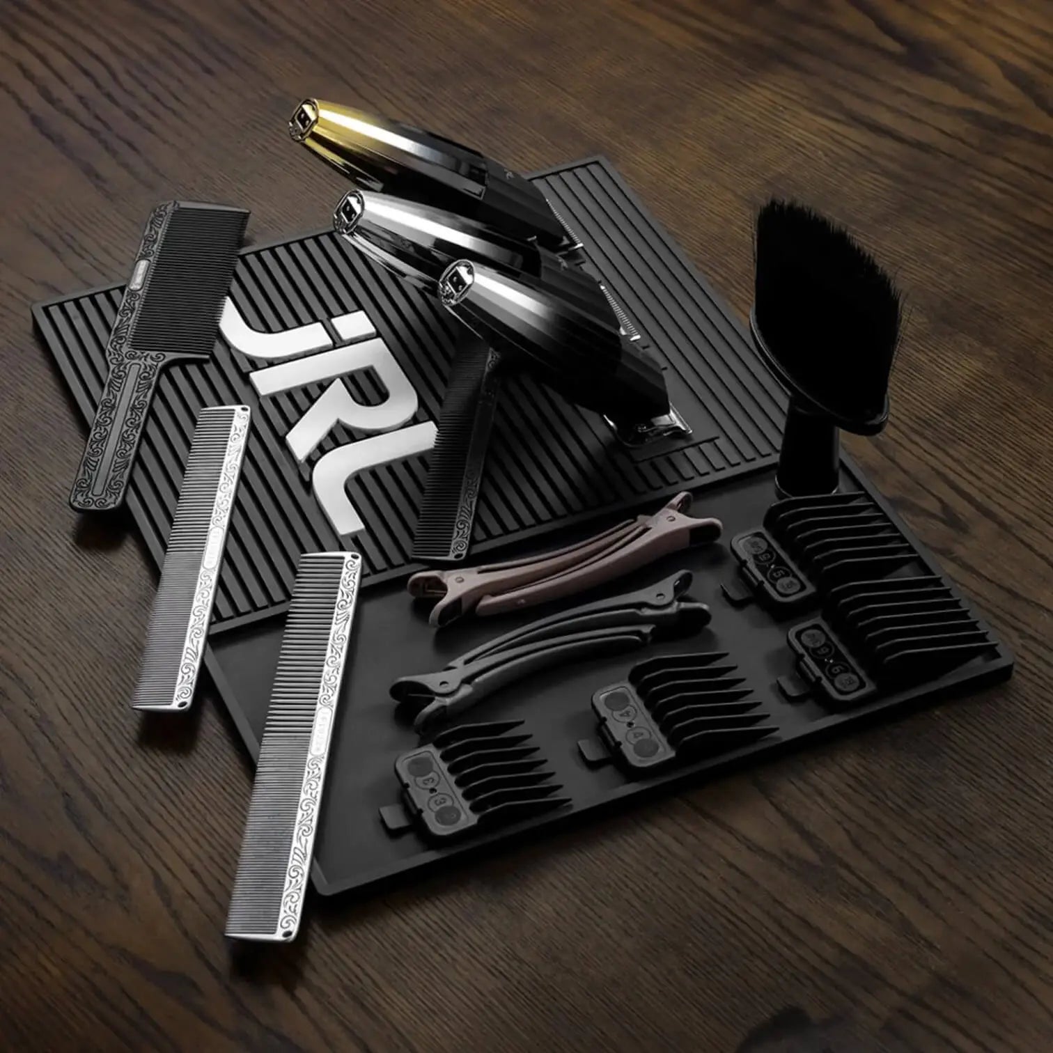 Eines der Hauptmerkmale der Matte sind ihre sechs starken Magnetplatten, die speziell dafür konzipiert wurden, um Haarschneidemaschinen und Trimmer sicher zu halten. Diese magnetischen Platten sorgen dafür, dass Ihre Werkzeuge nicht nur organisiert, sondern auch leicht zugänglich sind.
