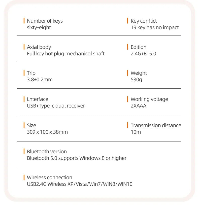 Diese K68 Wireless Mechanical Tastatur kombiniert präzise Mechanik, vielseitige Konnektivität und ein durchdachtes Hot-Swap-Design, um individuelle Anpassungen und zuverlässige Performance zu ermöglichen. Ob beim Gaming, bei der Arbeit oder unterwegs – die Tastatur bietet eine professionelle Lösung für hohe Ansprüche, einfache Wartung und lange Nutzungsdauer. Mit ihrem stabilen Aufbau, den linearen Red Switch-Schaltern und der Möglichkeit, Schalter ohne Löten auszutauschen, eröffnet sie viele Optionen zur Personalisierung des Tippgefühls. Die Kombination aus Bluetooth-Flexibilität und USB-C-Verlässlichkeit sorgt dafür, dass Sie jederzeit das passende Setup nutzen können. Investieren Sie in eine Tastatur, die sowohl Leistungsfähigkeit als auch Komfort in den Vordergrund stellt.