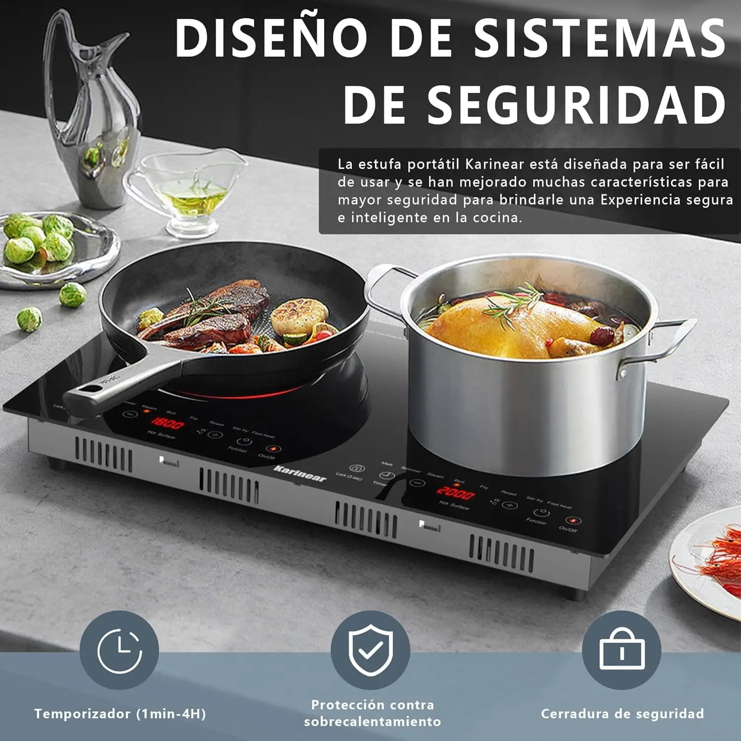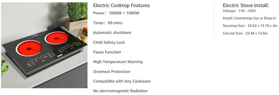 - Kompatibel mit 110–120V und 220–240V Spannungsbereichen, sodass das Kochfeld in verschiedenen Haushaltssituationen und Regionen einsetzbar ist.