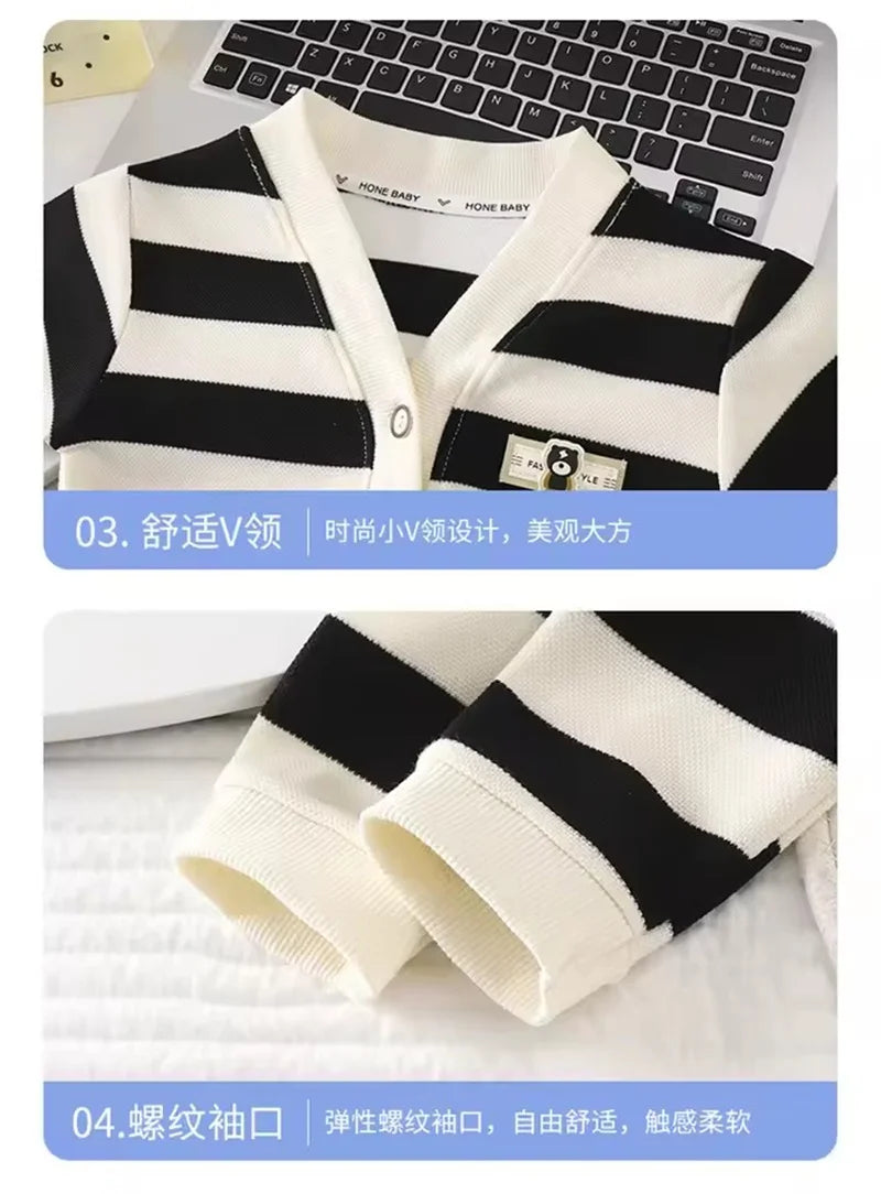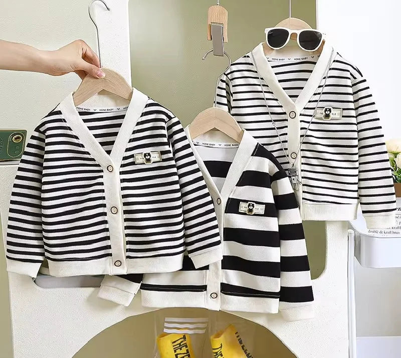 XJYIYUANLCCN Gestreifte Strickjacke - Größe 1-10 Jahre, Weiche Wolle, V-Ausschnitt