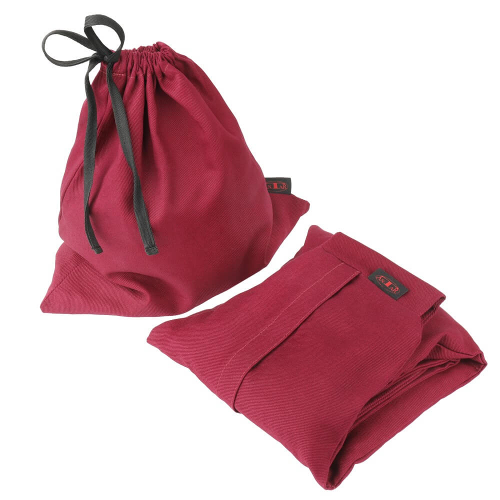 - Hochwertiges Material: Hergestellt aus Drillich (100 % Baumwolle) in bordeauxrot und rohem Baumwollstoff, was Haltbarkeit und Komfort gewährleistet.