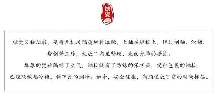 - Material: Porzellanemailliertes Metall (Emailleschicht)