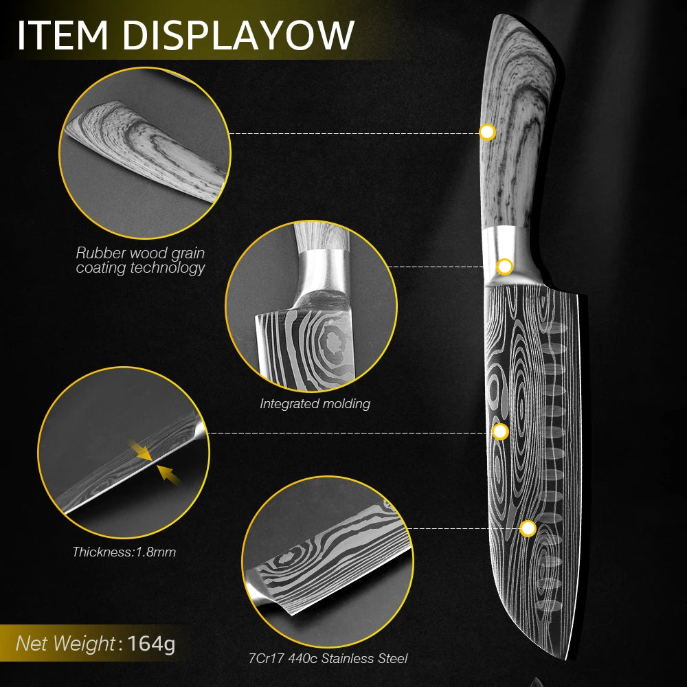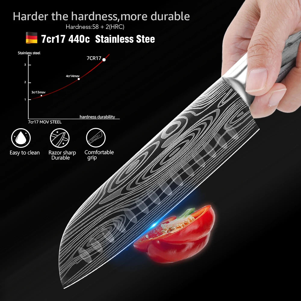 Kitchen Knife Damascus Laser Chef Knife 5 7 8 Inch Meat Cleaver Japanese Santoku Knive Butcher Slicing Cutter for Fish Vegetable