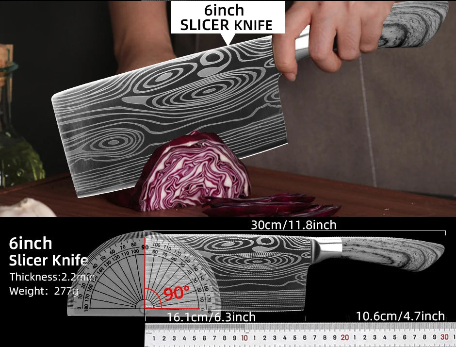 - Hochwertiger 7CR-Stahl: Bietet ausgezeichnete Härte, Verschleißfestigkeit und Korrosionsbeständigkeit für den täglichen Gebrauch in der Küche.