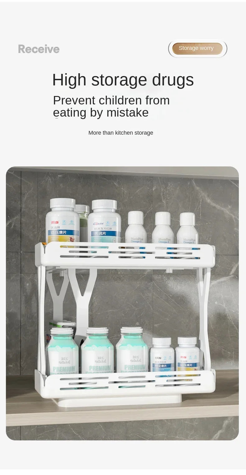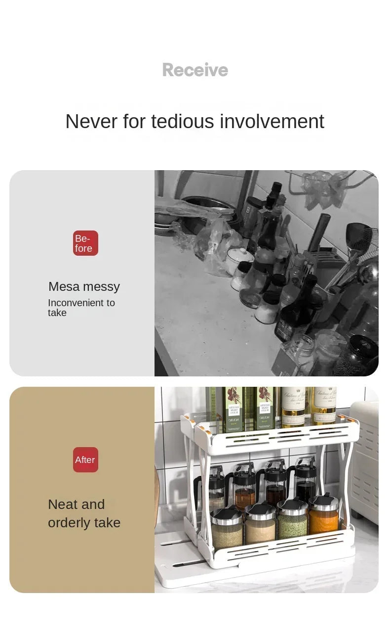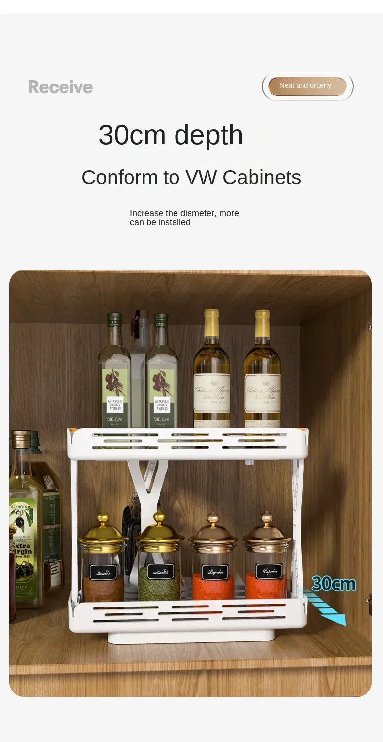 Kitchen Rotating Spice Rack 2 Tier Plastic Seasoning Spice Detachable Jar Storage Rack Pull Out Kitchen Cabinet Organiser