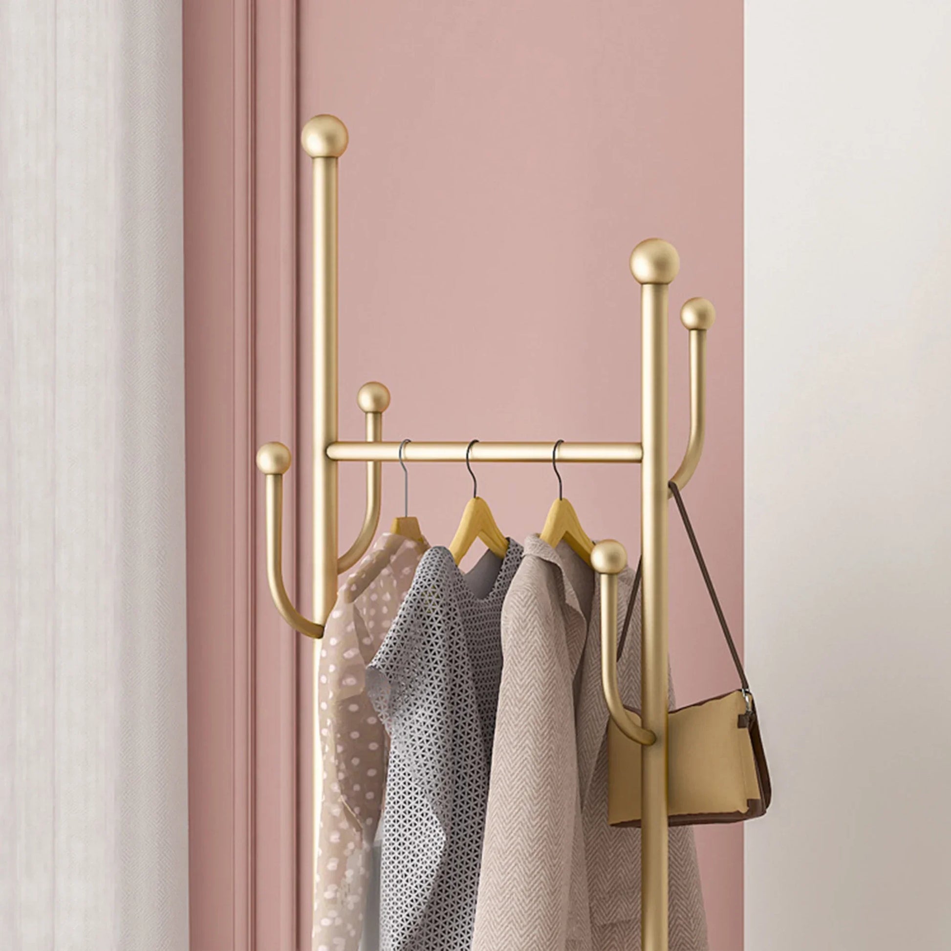 Kleiderständer, Goldener Garderobenständer mit 6 Haken, Freistehender Kleiderständer, Kleiderstange aus Metall