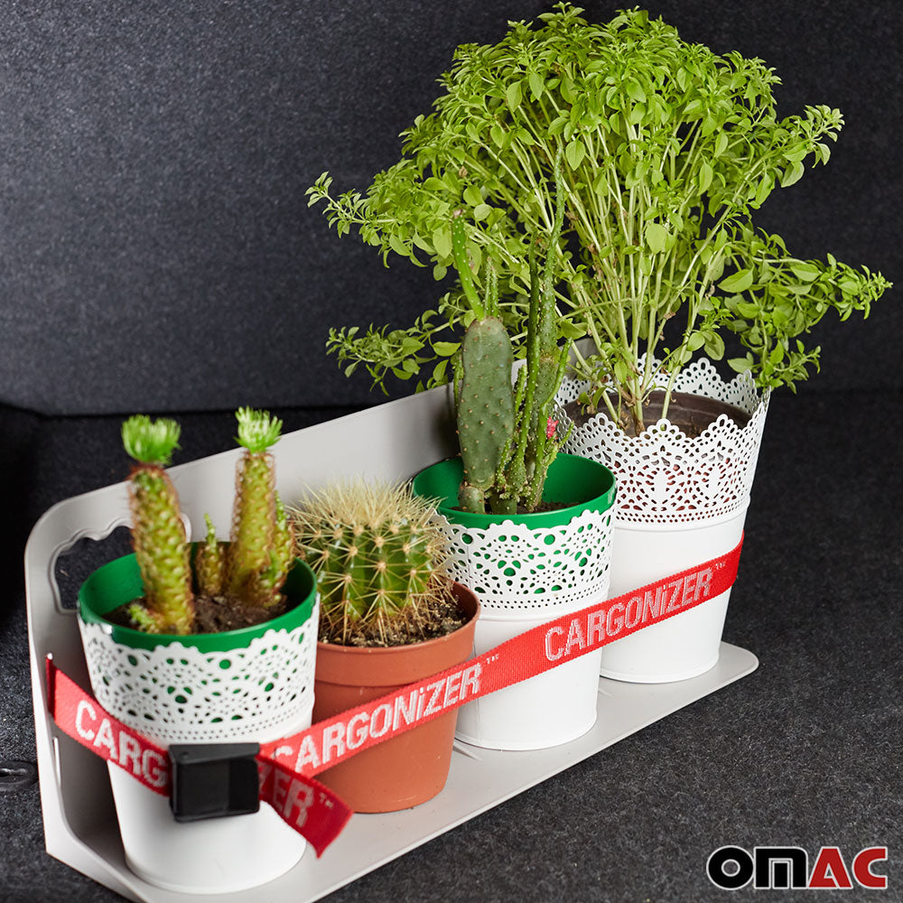 Ob Flaschen, Lebensmittel, Sportgeräte oder Werkzeug, dieser Organizer sorgt dafür, dass alles während der Reise an seinem Platz bleibt. Dank des selbstklebenden Klettsystems lässt sich der Kargonizer mühelos auf dem Teppich Ihres Fahrzeugs befestigen.