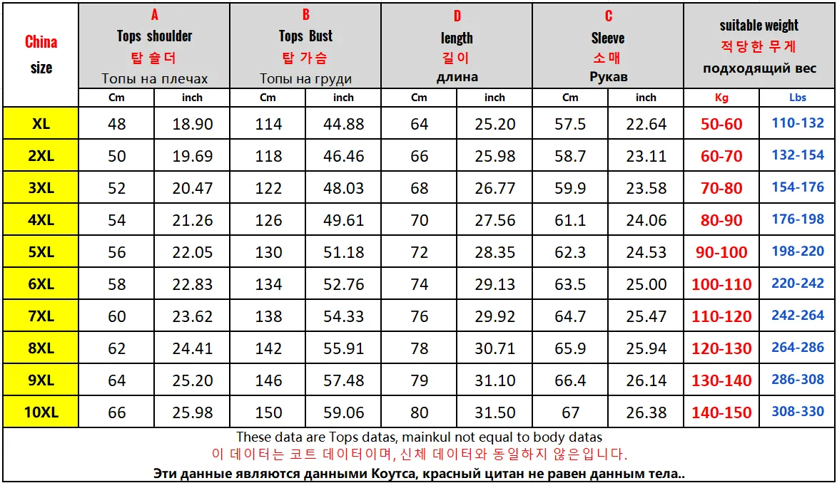 - Verfügbare Größen: XL, 2XL, 3XL, 4XL, 5XL, 6XL, 7XL, 8XL, 9XL, 10XL