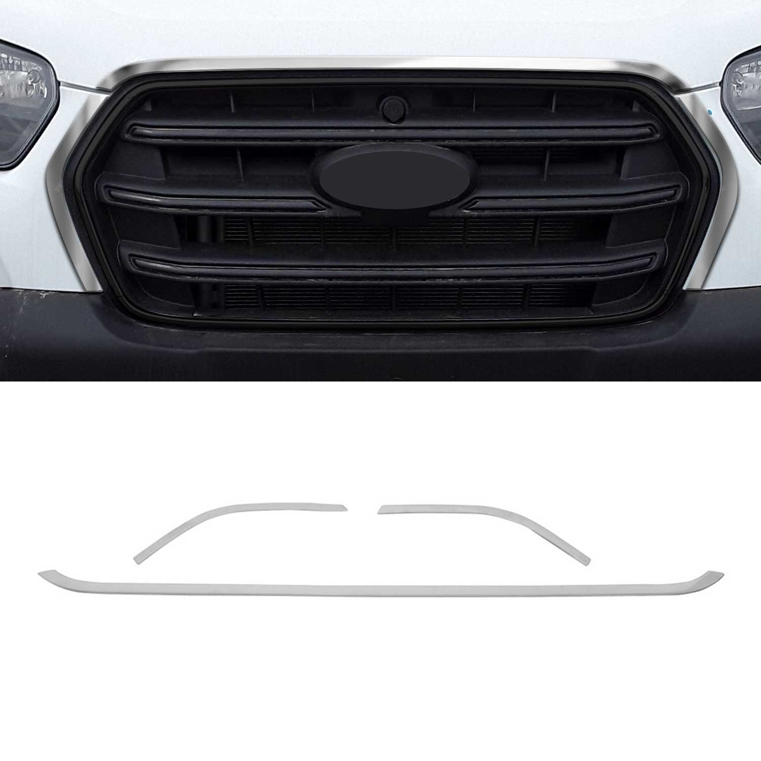 Kühlergrill Leisten Grillleisten für Ford Transit 2019-2025 Edelstahl Silber 3x