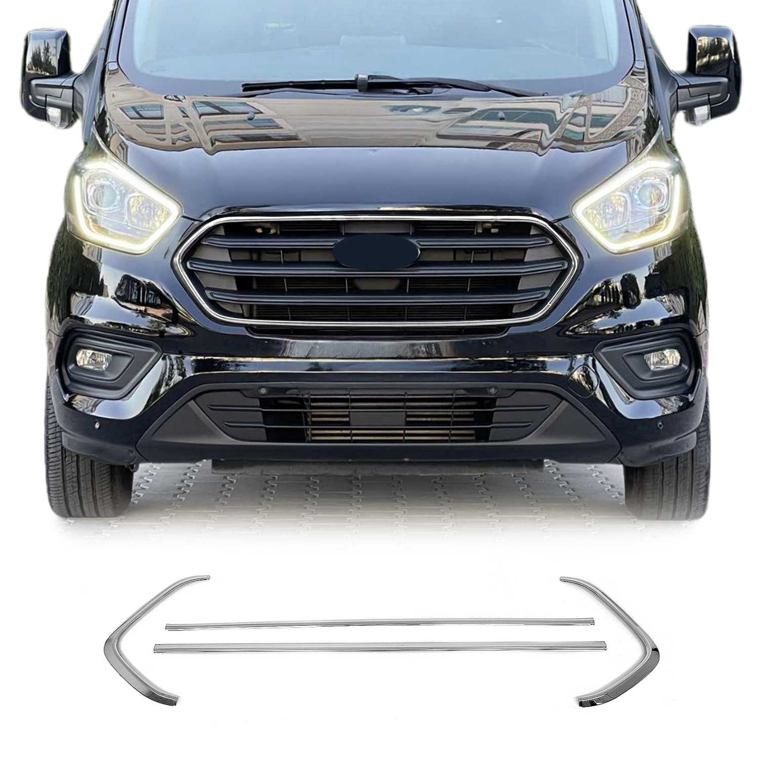 Kühlergrill Leisten Grillleisten für Ford Transit Custom 2018-2023 Chrom 4x