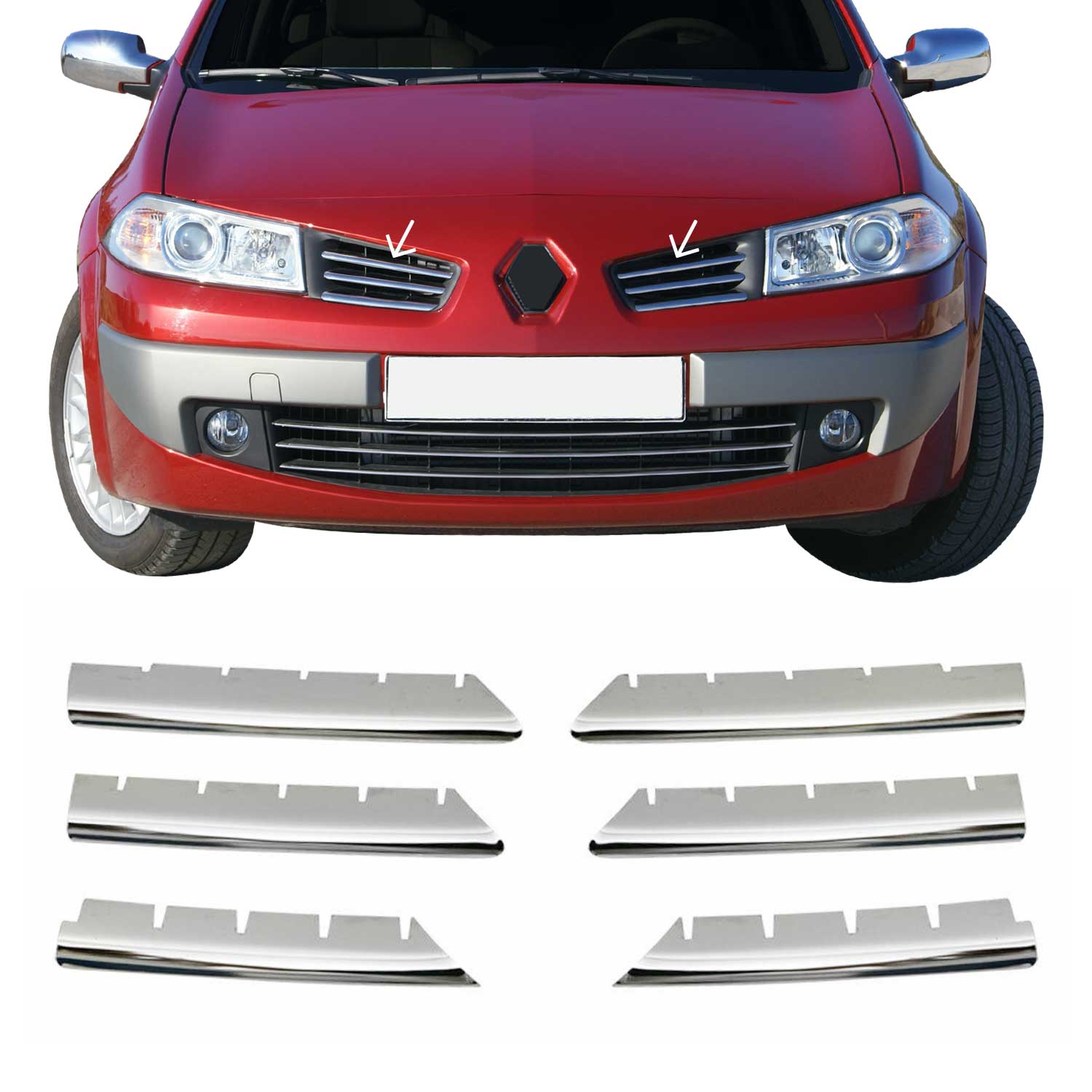 Kühlergrill Leisten Grillleisten für Renault Megane 2002-2006 Chrom Silber 6x