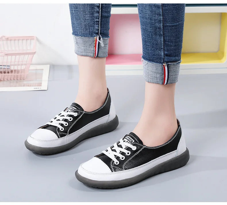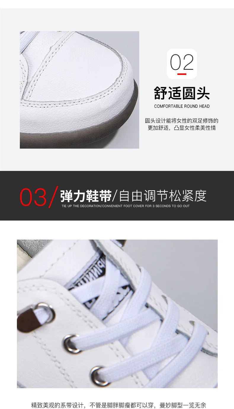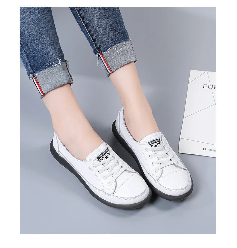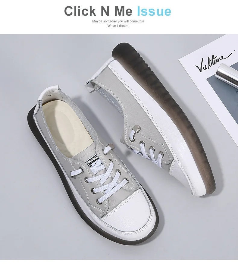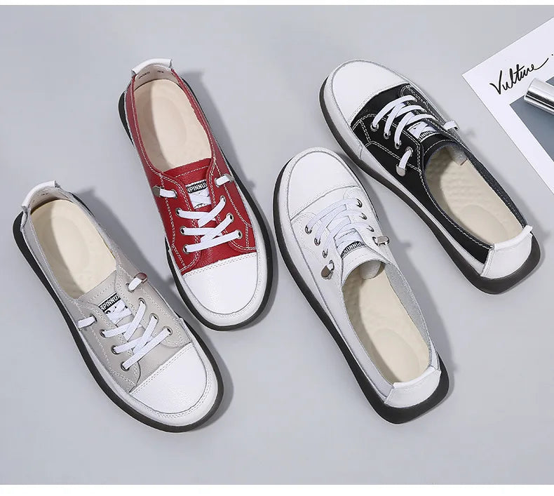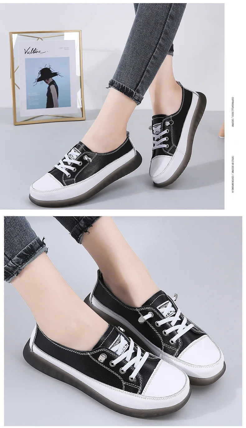Ladies Sneakers 2024 Spring Genuine Leather Casual Walking Shoes Women Fashion Summer Flats Youth Girl Student Jogging Trainers