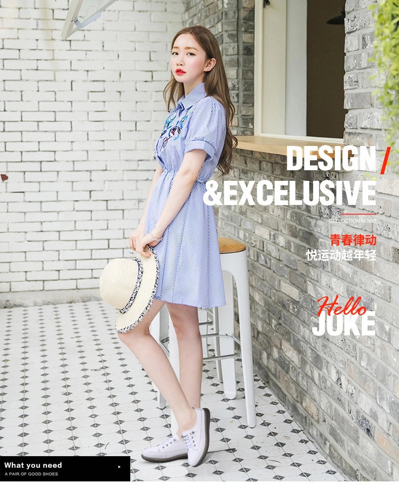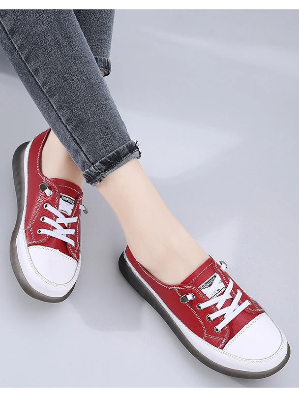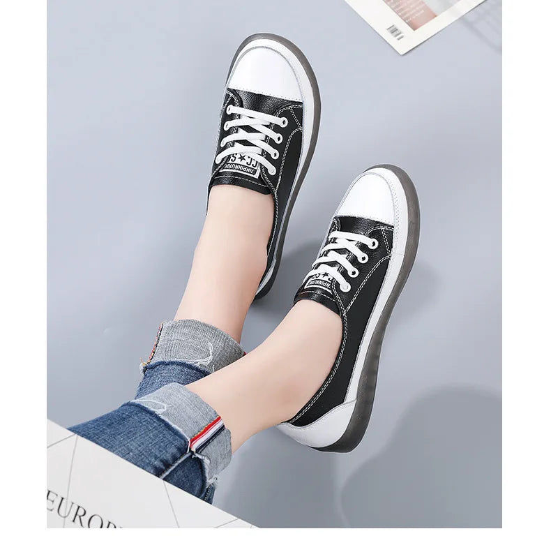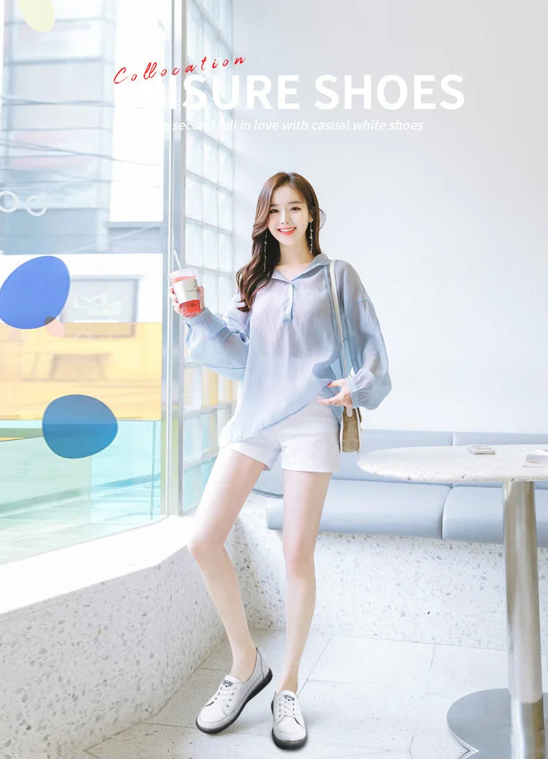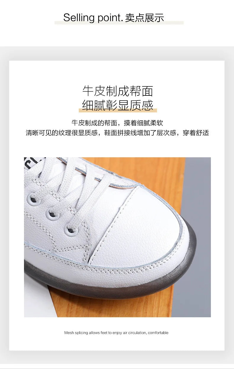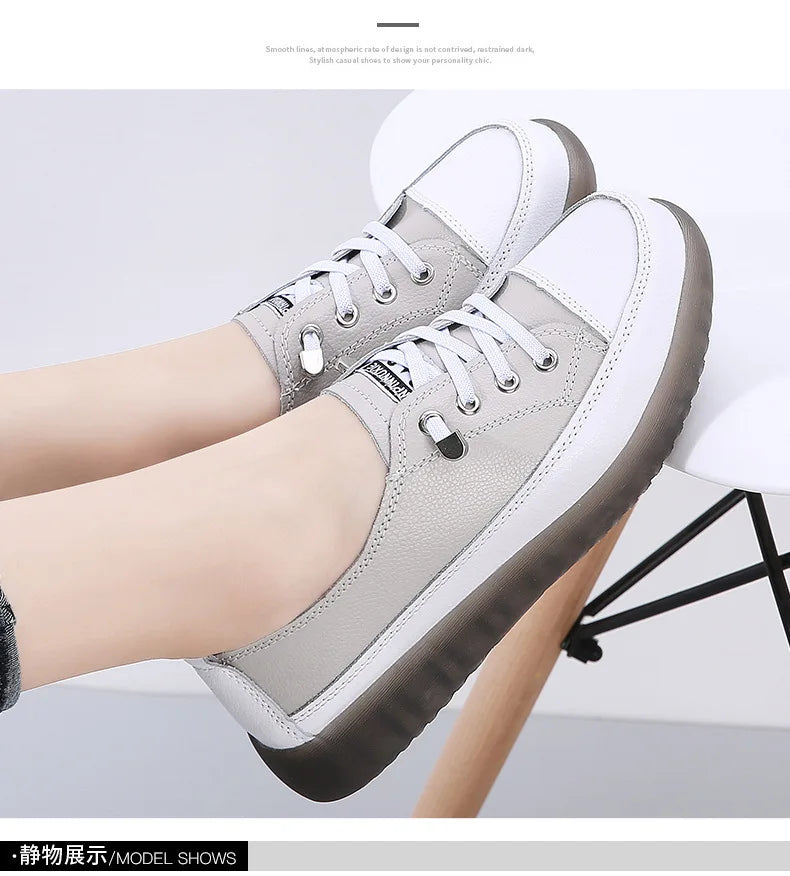 Ladies Sneakers 2024 Spring Genuine Leather Casual Walking Shoes Women Fashion Summer Flats Youth Girl Student Jogging Trainers