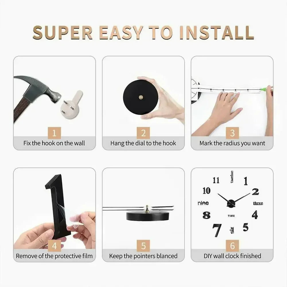 Verwandeln Sie Ihre Wände in ein modernes Statement: Diese große 3D-Wanduhr kombiniert präzise Zeitablesung mit einem reflektierenden Acryl-Ziffern-Design für sofortige Aufwertung von Wohnraum, Büro oder Küche.