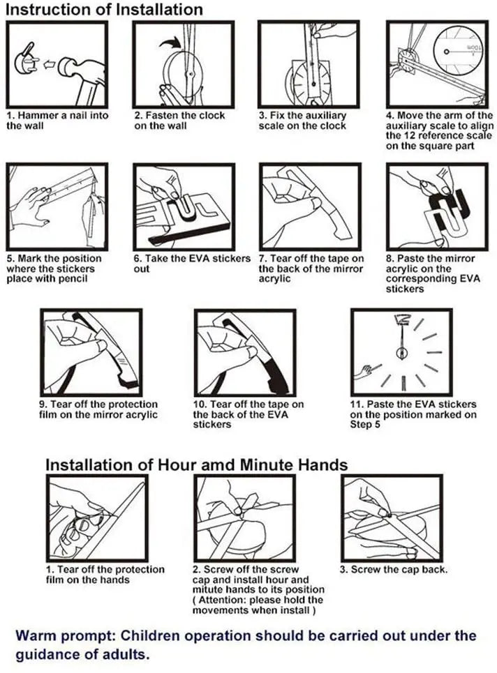 Large 3D Wanduhr mit Spiegeloberfläche – stilvolle Raumdekoration und anpassbares Design