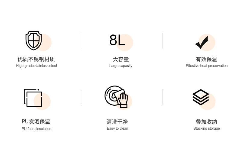 Dieses isolierte Behälter-Set kombiniert robuste Materialien, durchdachte Funktionalität und ein benutzerfreundliches Design. Es ist speziell entwickelt für den täglichen Einsatz in Küche, Haushalt und gewerblichen Bereichen, wo Hygiene, Mobilität und Temperaturhaltung entscheidend sind. Durch die Verwendung von 201-Edelstahl und einer auslaufsicheren Konstruktion profitieren Anwender von einer langlebigen, leicht zu reinigenden Lösung, die sowohl im heimischen Haushalt als auch im professionellen Umfeld überzeugt. Die verschiedenen Kapazitätsoptionen ermöglichen eine passgenaue Auswahl für unterschiedliche Anforderungen — vom kleinen Familienessen bis zum Catering-Event.