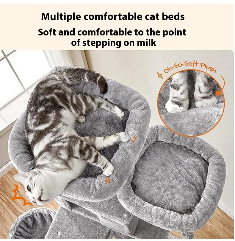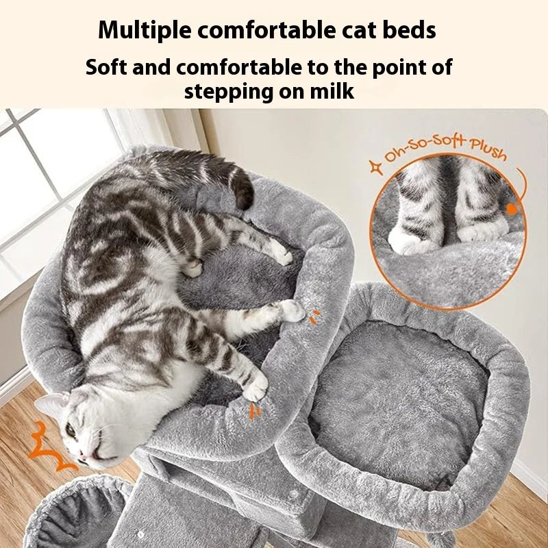 Large Cat Tree Tall Cat Tower for Indoor Cats Multi-Level Plush Cat Condo with Scratching Posts Scratching Boards Perches Caves