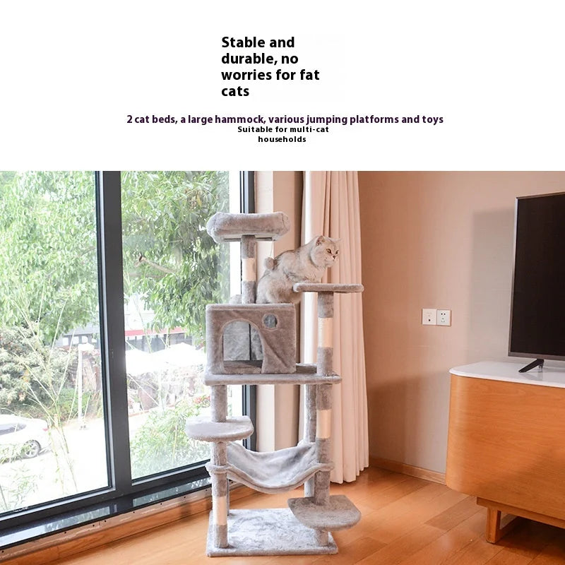 Dieser mehrstöckige Kratzbaum bietet großen Katzen Stabilität, vielseitige Kletter- und Ruheflächen sowie langlebige Materialien für langanhaltenden Spiel- und Erholungsspaß.