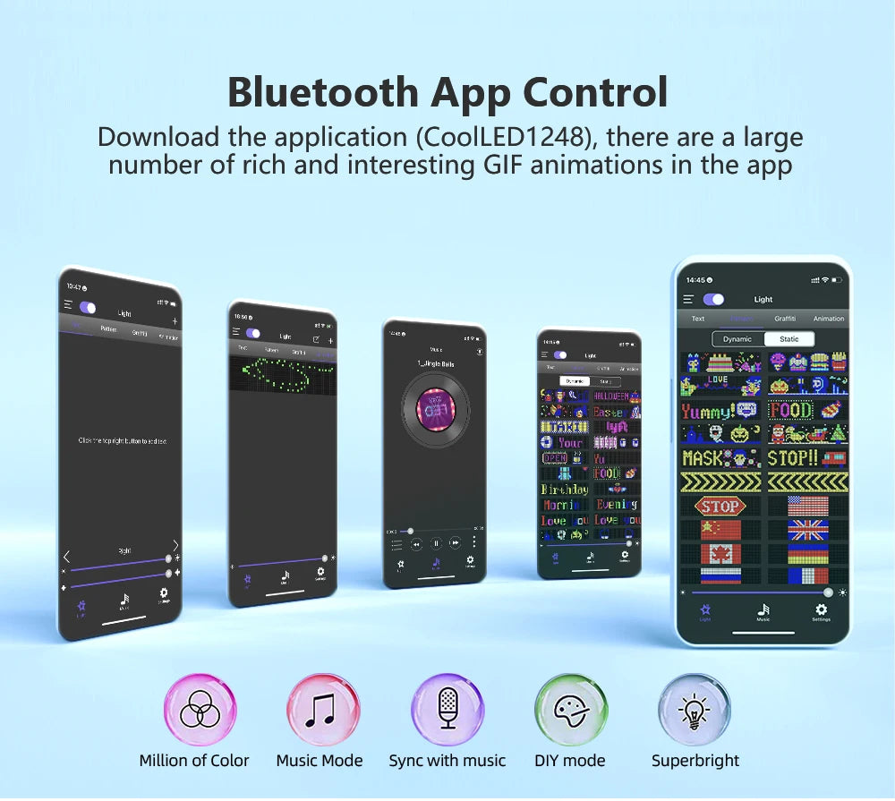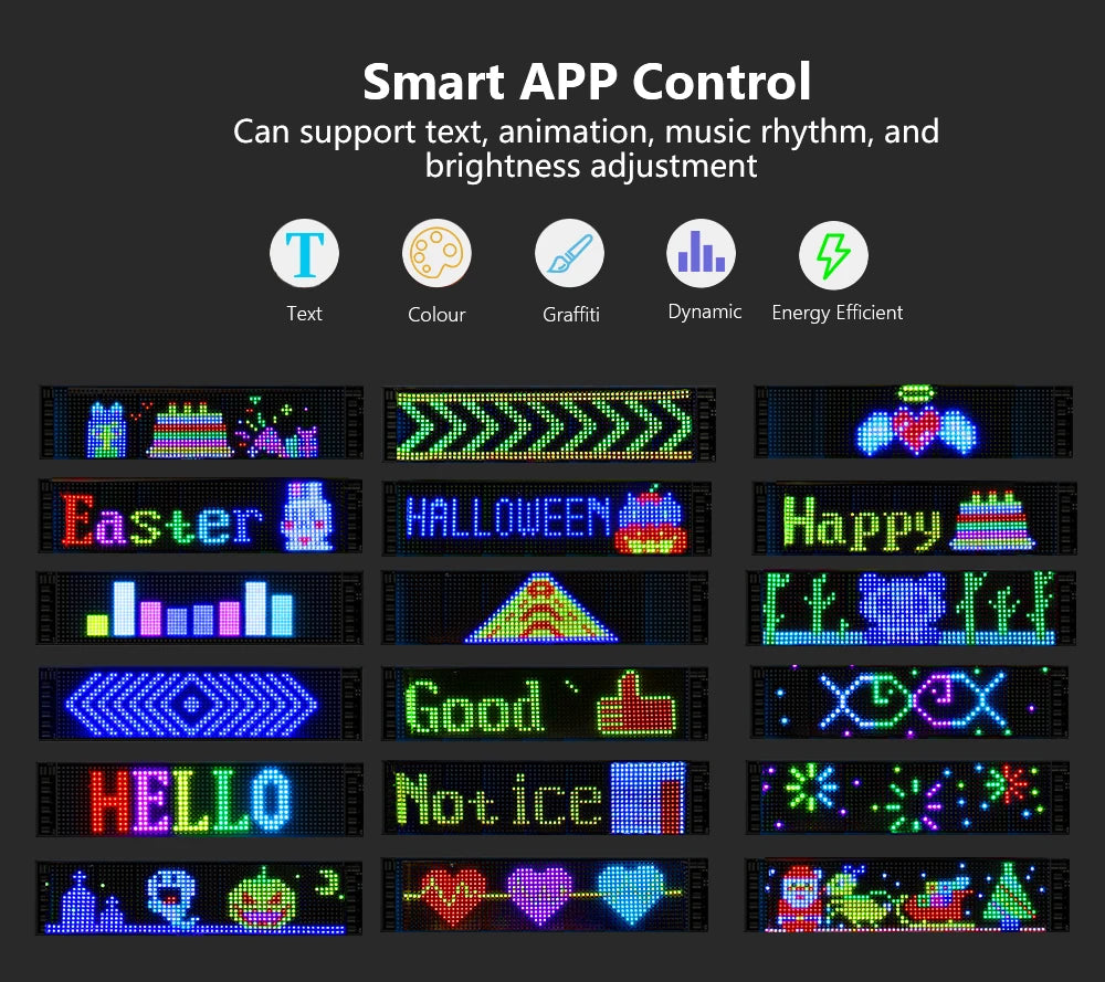 Dieses LED-Matrix-Pixel-Panel vereint modernste Anzeigetechnik mit einfacher Handhabung: Die Kombination aus flexibler Bauweise, stromsparender USB-Versorgung und einfacher Bluetooth-Fernsteuerung macht das Produkt zu einer vielseitigen Lösung für professionelle Beschilderung und bewegte Werbeinhalte. Ob stationäre Schaufensterwerbung, mobile Fahrzeuganzeigen oder temporäre Eventbeschilderung — dank intuitiver App-Steuerung und zuverlässiger Hardware realisieren Sie aufmerksamkeitsstarke Kampagnen schnell und kosteneffizient. Die gelieferten Anschlussteile und Montagehilfen ermöglichen einen schnellen Start, die skalierbaren Content-Optionen unterstützen nachhaltige Marketingstrategien.