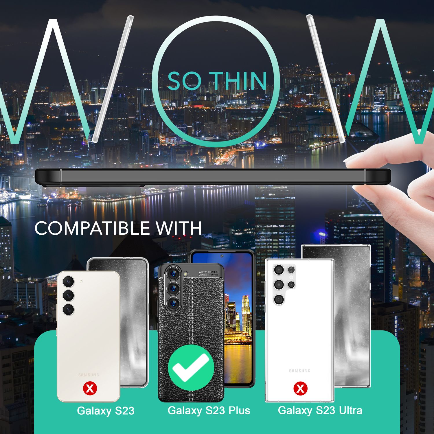 Leder Look Silikon Hülle für Samsung Galaxy S23 Plus, 2x Displayschutz, Schwarz