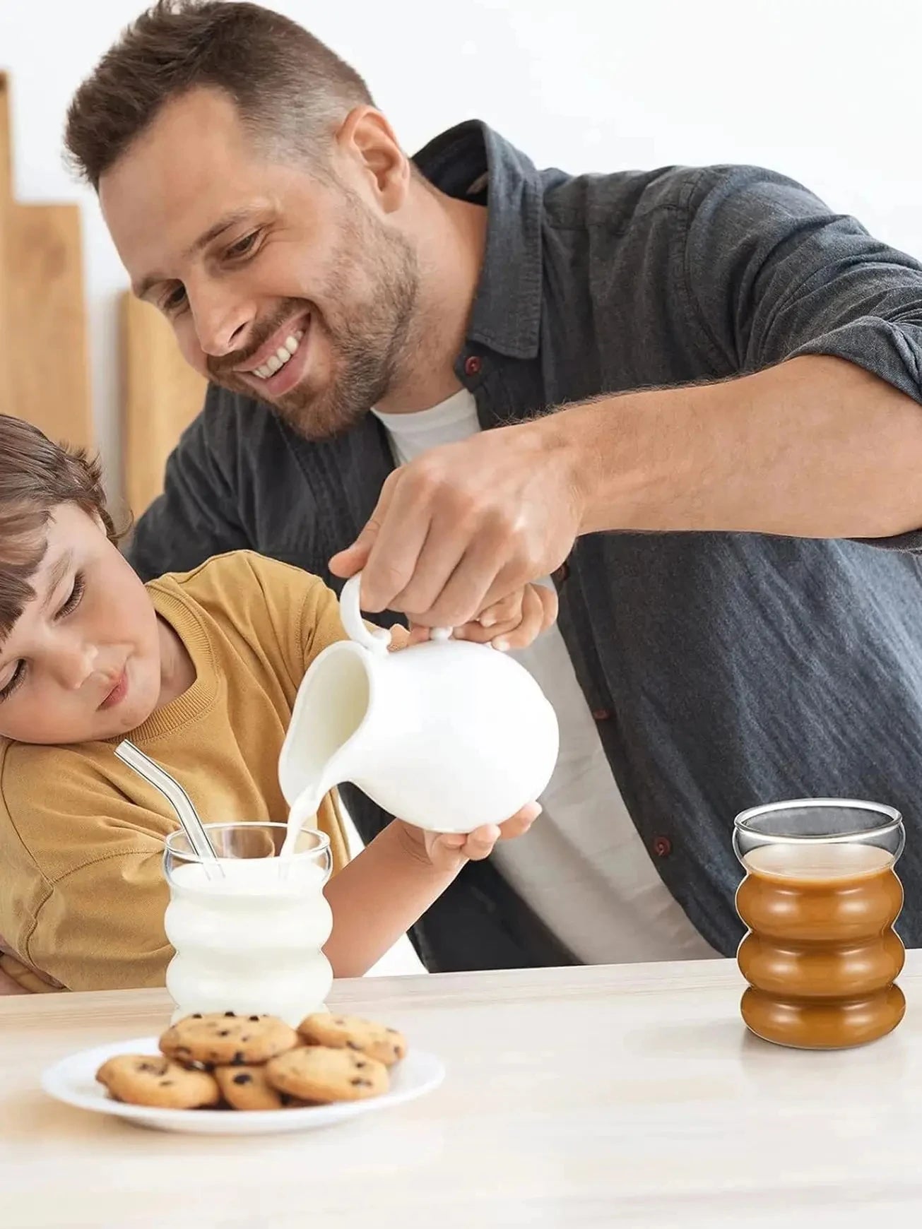 Verwandeln Sie Ihren Alltag mit einem eleganten Set aus vier gerippten Glasbechern, das Design, Funktionalität und Nachhaltigkeit vereint. Diese Glasbecher kombinieren Vintage-Charme mit moderner Handhabung und sind ideal für Kaffee, Erfrischungsgetränke, Säfte oder Wasser – zu Hause oder bei Gästen.