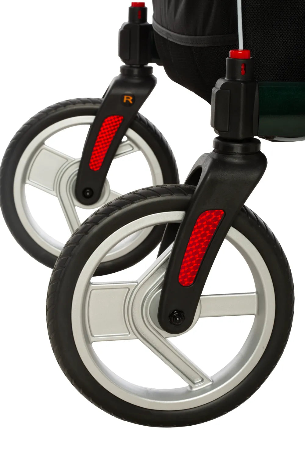 - Abnehmbare Vorderräder: Noch mehr Platzersparnis durch Klicksystem.