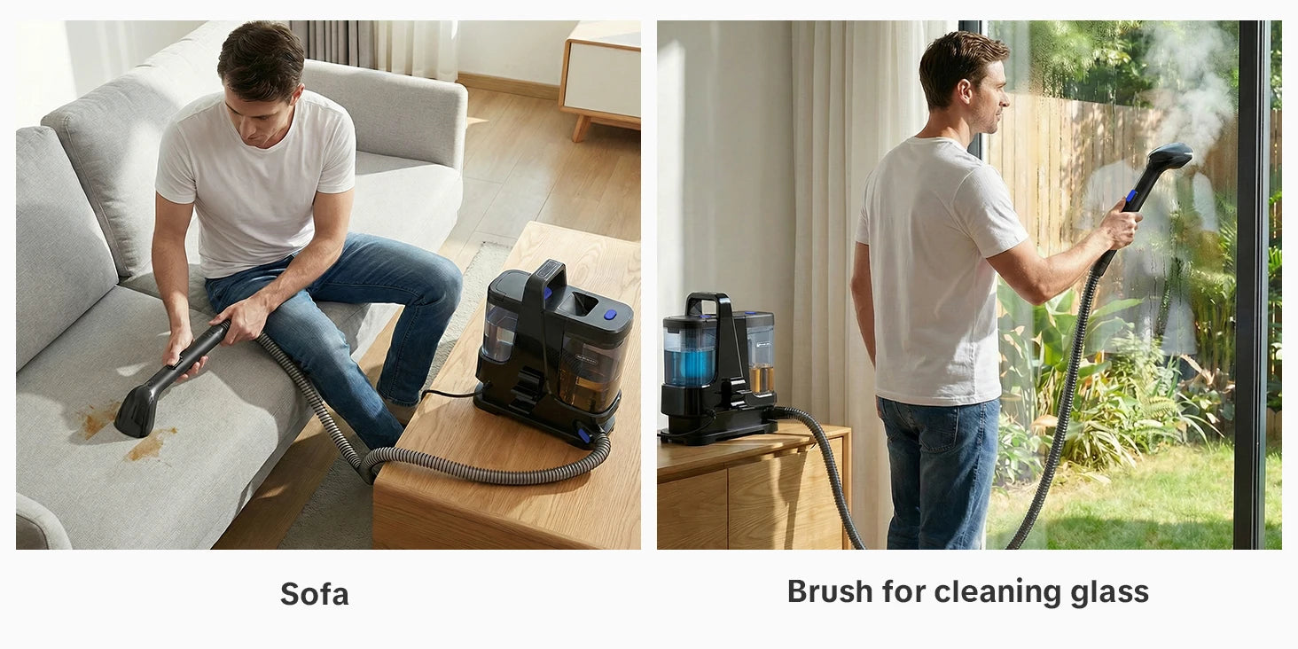 - Der Steam-Modus arbeitet mit hohen Temperaturen (80–100 °C), tötet Milben und Bakterien gründlich ab und eignet sich ideal für Polstermöbel, Matratzen und Küchenbereiche.