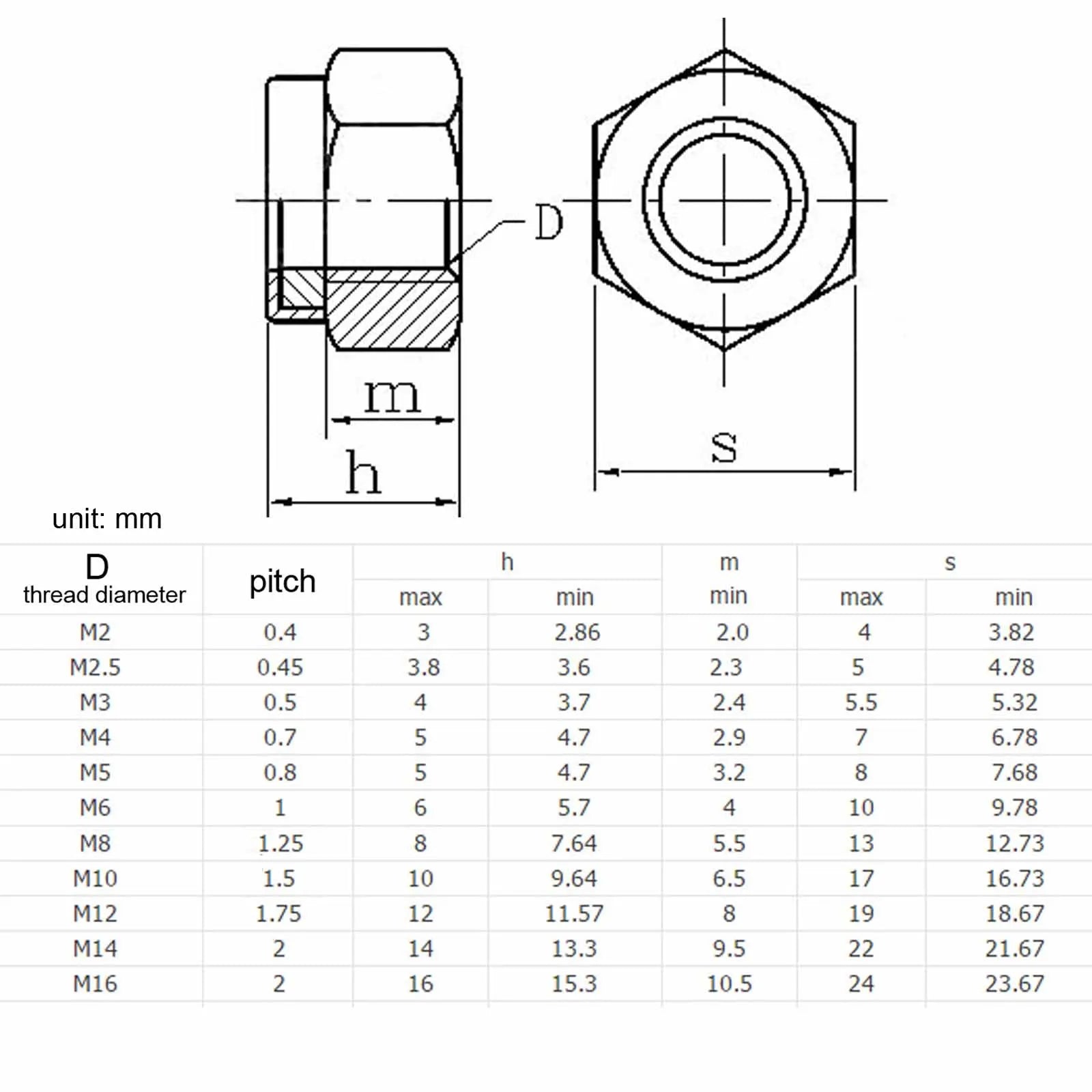 - 1 Packung selbstsperrende Hex-Nyloneinsatz-Muttern in gewählter Größe (M2–M16)